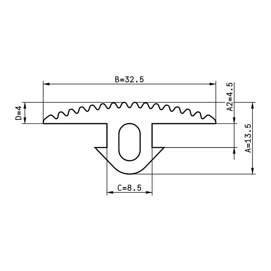 Rubberen Cover Strip 40 ISB Maatvoering