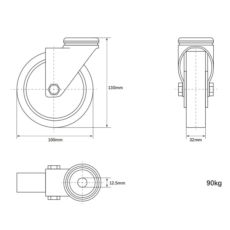 Wiel D100mm Ongeremd 90KG