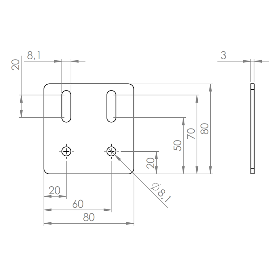 Stelplaat 80×80 M8