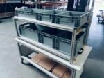 - De lades zijn afgesteld op Euronormbakken voor een hoogte van 220mm