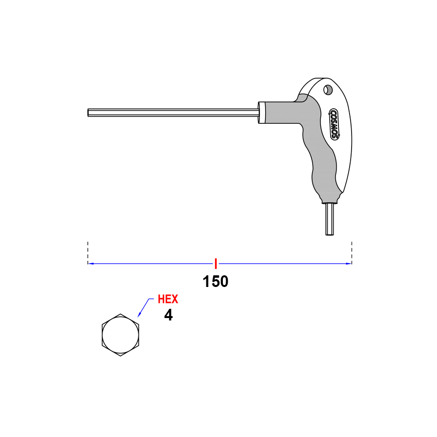 COSMOS Elite bzksleutel T-handvat 4x150mm Maatvoering