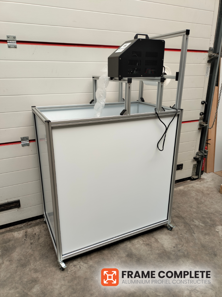 Deze constructie is opgebouwd uit 30×30 BSB Slot 8 profielen en het basisframe is gemonteerd middels de Interne L Hoekverbinder Buiten/Binnen.